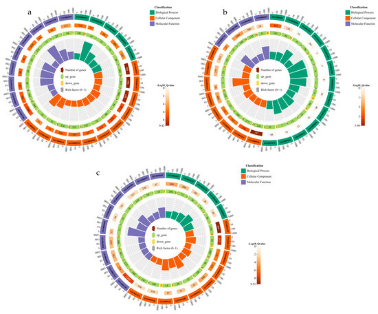 Enrichment analysis of the first 25 terms differentially expressed genes. (a) CK VS MJ50; (b) CK VS MJ100; (c) CK VS MJ250.