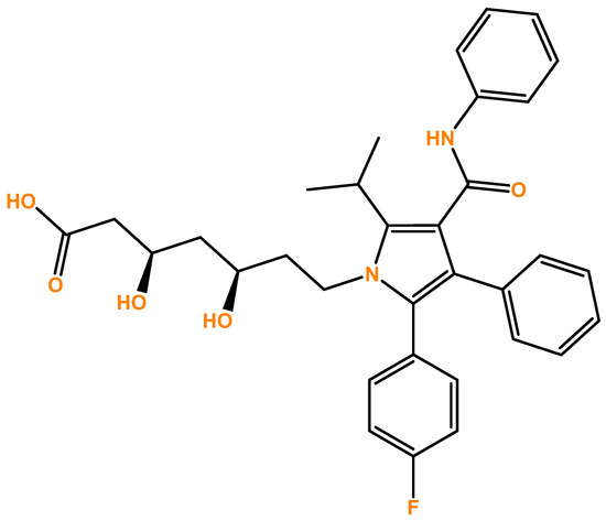 - Atorvastatin | C33H35FN2O5. PubChem. Available online: https://pubchem.ncbi.nlm.nih.gov/compound/Atorvastatin (accessed on 2 March 2023).