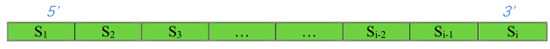 In Equation (14), is a DNA sequence, denotes the total number of bases in the sequence, is a subsequence of , and is the number of subsequences identical or complementary to , satisfying the condition , . The double-matching constraint is expressed as follows: