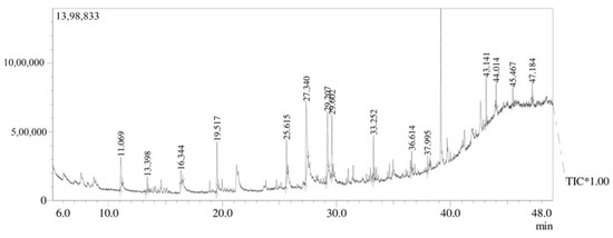 GC-MS chromatogram of ethyl acetate extract of Aspergillus niger strain AK-6.