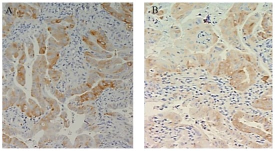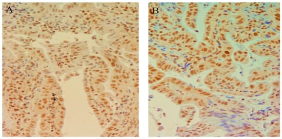 The prevalence of p53 gene mutations is very rare in the esophageal mucosa with BE or with low-grade dysplasia (LGD) while it increases in high-grade dysplasia (HGD) and in AEC, ranging from 60 to 80% depending on the cases of cases [19,28,29]. Especially in HGD, an elevated risk of EAC was observed in all cases in which p53 was overexpressed [30].