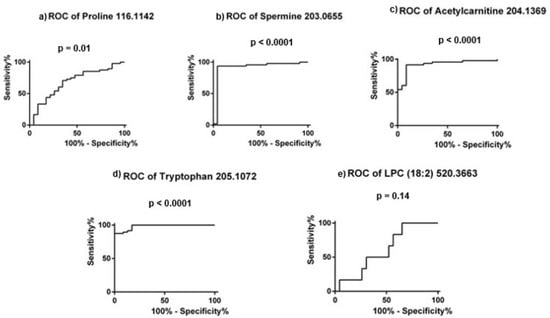 | Metabolite | m/z | AUC Value | 95% CI | p Value |