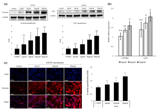 3.2. Escin Activated Wnt/β-Catenin Signaling in Cultured hDPCs