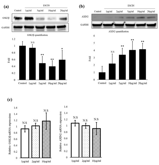 APA StyleShin, J. Y., Kim, J., Choi, Y.-H., Lee, S., & Kang, N.-G. (2023). Escin Activates Canonical Wnt/β-Catenin Signaling Pathway by Facilitating the Proteasomal Degradation of Glycogen Synthase Kinase-3β in Cultured Human Dermal Papilla Cells. Current Issues in Molecular Biology, 45(7), 5902-5913. https://doi.org/10.3390/cimb45070373