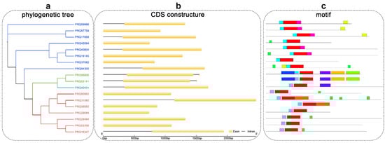 The CDS structure of the eighteen TCP members, including their intron-exon distribution, was studied to further verify the evolutionary and phylogenetic relationships between members of the TCP family. The CDS structure of the TCP family is relatively simple, with 38.9% of the CDSs containing one intron and one exon, 50% of the CDSs having only one exon, and 11.1% of the CDSs having two exons and two introns (Figure 3b).