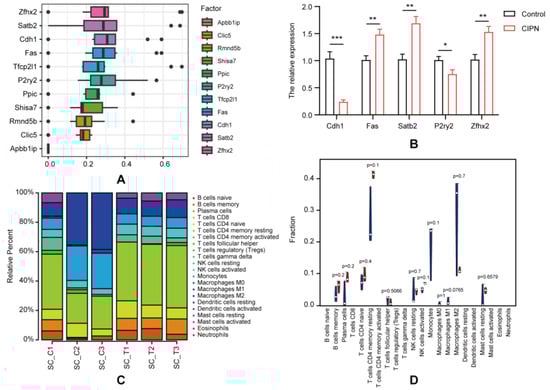 Neuroimmune crosstalk is of central importance in neuropathic pain, as it supports the initiation, progression, and resolution of pain [37]. Previous analyses have found that most immune cells, inflammatory mediators, cytokines, and chemokines were associated with neuropathic pain [38,56]. Activated immune cells such as macrophages, neutrophils, and lymphocytes can release cytokines and chemokines that typically induce pain [57]. Pain can also induce immunity and help sensitize nociceptors [58]. Consistently, we found that, in CIPN rats, there was a meaningful correlation between overlapping mRNAs and many immune cells. According to the immune infiltration analysis of hub genes, Cdh1 mainly correlates with plasmacytoid dendritic cells and macrophages, which can modulate the function of nociceptor sensory neurons and the development of neuropathies [59,60]. Fas and P2ry2 are negatively correlated with monocytes, Satb2 is positively correlated with Type 2 T helper cells, and Zfhx2 is closely related to T cells CD4 memory resting, suggesting their importance in CIPN and immunity.