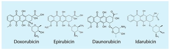 Over the past decade, a significant improvement in cancer patient outcomes has been indicated due to the advancement of anti-tumor antibiotics such as anthracyclines (ATCs), Figure 3 [14]. These anti-tumor antibiotics change the DNA found in the cancer cells to prevent them from growing and multiplying [69]. According to Abdullah and colleagues, ATCs have become the cornerstone of chemotherapy for various cancers, especially since many ATCs are already effective and approved as anti-cancer drugs [15,73]. These include Daunorubicin, Epirubicin, Idarubicin, and Doxorubicin [15,73,74].