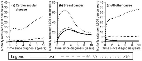 - Gernaat, S.A.M.; Ho, P.J.; Rijnberg, N.; Emaus, M.J.; Baak, L.M.; Hartman, M.; Grobbee, D.E.; Verkooijen, H.M. ‘Risk of death from cardiovascular disease following breast cancer: A systematic review. Breast Cancer Res. Treat. 2017, 164, 537–555. [Google Scholar] [CrossRef] [PubMed]