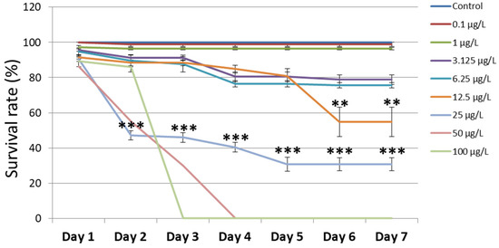 - Wang, R.F.; Zhu, L.M.; Zhang, J.; An, X.P.; Yang, Y.P.; Song, M.; Zhang, L. Developmental toxicity of copper in marine medaka (Oryzias melastigma) embryos and larvae. Chemosphere 2020, 247, 125923. [Google Scholar] [CrossRef] [PubMed]