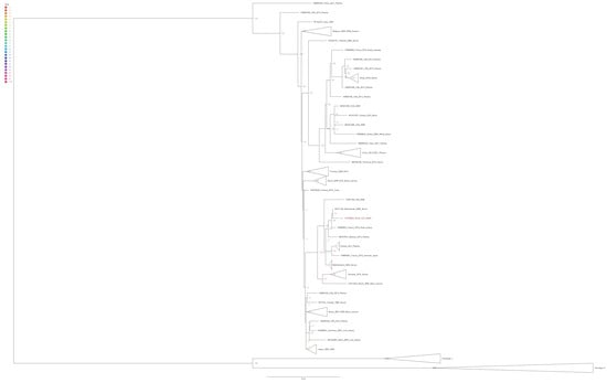 - Tamura, K.; Stecher, G.; Kumar, S. MEGA11: Molecular Evolutionary Genetics Analysis Version 11. Mol. Biol. Evol. 2021, 38, 3022–3027. [Google Scholar] [CrossRef]