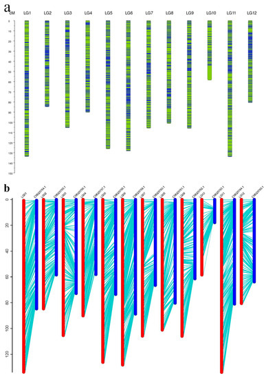 - Tang, H.; Zhang, X.; Miao, C.; Zhang, J.; Ming, R.; Schnable, J.C.; Schnable, P.S.; Lyons, E.; Lu, J. ALLMAPS: Robust scaffold ordering based on multiple maps. Genome Biol. 2015, 16, 3. [Google Scholar] [CrossRef] [PubMed]