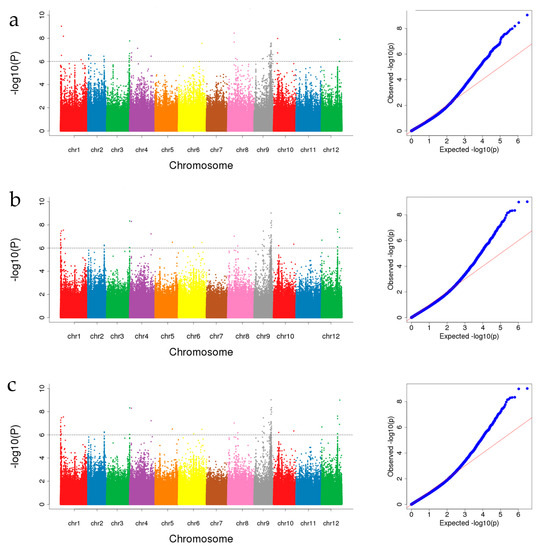 - Zhou, X.; Stephens, M. Efficient multivariate linear mixed model algorithms for genome-wide association studies. Nat. Methods 2014, 11, 407–409. [Google Scholar] [CrossRef]