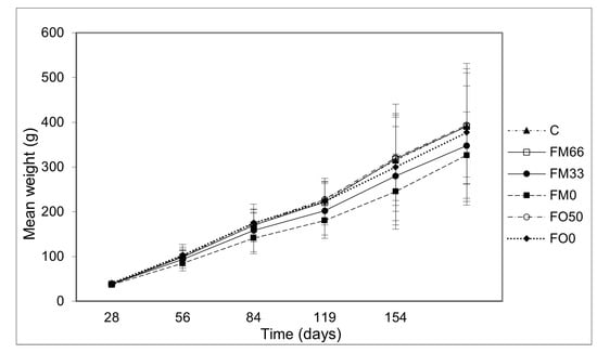 - Nogales-Mérida, S.; Martínez-Llorens, S.; Moñino, A.V.; Jover Cerdá, M.; Tomás-Vidal, A. Fish Oil Substitution by Soybean Oil in Sharpsnout Seabream Diplodus Puntazzo: Performance, Fatty Acid Profile, and Liver Histology. J. Appl. Aquac. 2017, 29, 46–61. [Google Scholar] [CrossRef]
