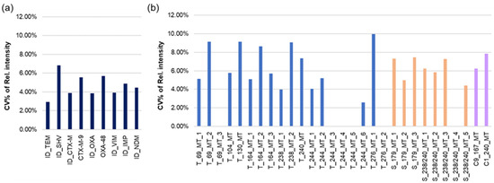 - Leinberger, D.M.; Grimm, V.; Rubtsova, M.; Weile, Y.; Schröppe, K.; Wichelhaus, T.A.; Knabbe, C.; Schmid, R.D.; Bachmann, T.T. Integrated detection of extended-spectrum-beta-lactam resistance by DNA microarray-based genotyping of TEM, SHV, and CTX-M genes. J. Clin. MIcrobiol. 2010, 48, 460–471. [Google Scholar] [CrossRef]