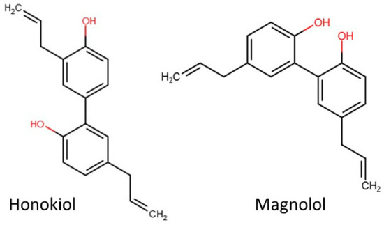 The chemical structure of honokiol and magnolol. Source: www.pol-aura.pl, accessed on 21 August 2024.