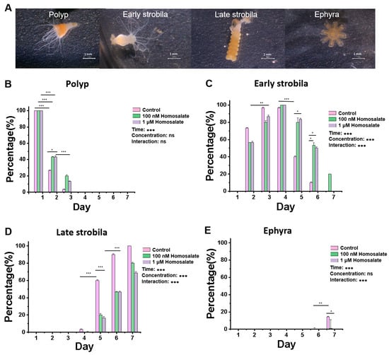 3.1. Homosalate Inhibits the Metamorphosis of Aurelia coerulea Polyps