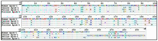 Amino acid sequence alignment of human, canine, feline, and porcine ApoA-1.