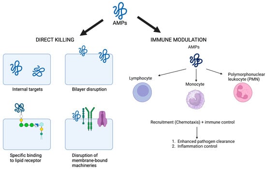 Various naturally occurring compounds known as antimicrobial peptides (AMPs) protect hosts from pathogens, including bacteria, fungi, parasites, and viruses [100]. Small in size, most AMPs are cationic because they contain several lysine or arginine residues. This positive charge allows AMPs to interact with the predominantly negative bacteria membranes. However, some AMPs have anionic properties [101,102].