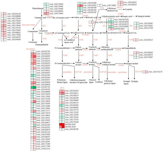 3.4. Identification and Analysis of Phenylpropanoid Biosynthesis-Related Genes