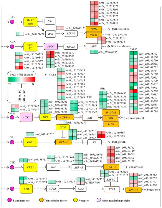 4.4. Plant Hormone Signal Transduction of the Root Growth Dynamics During the Germination of Diverse Sesame Varieties in Reponse to Heat Stress