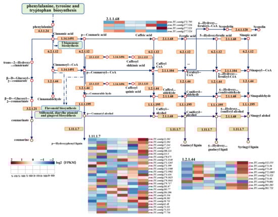 Expression of genes related to phenylpropanoid biosynthesis pathway.