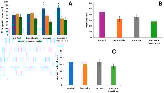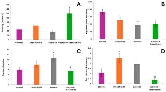 Rarinca, V.; Hritcu, L.D.; Burducea, M.; Plavan, G.; Lefter, R.; Burlui, V.; Romila, L.; Ciobică, A.; Todirascu-Ciornea, E.; Barbacariu, C.-A. Assessing the Influence of Low Doses of Sucrose on Memory Deficits in Fish Exposed to Common Insecticide Based on Fipronil and Pyriproxyfen. Curr. Issues Mol. Biol. 2024, 46, 14168-14189. https://doi.org/10.3390/cimb46120848