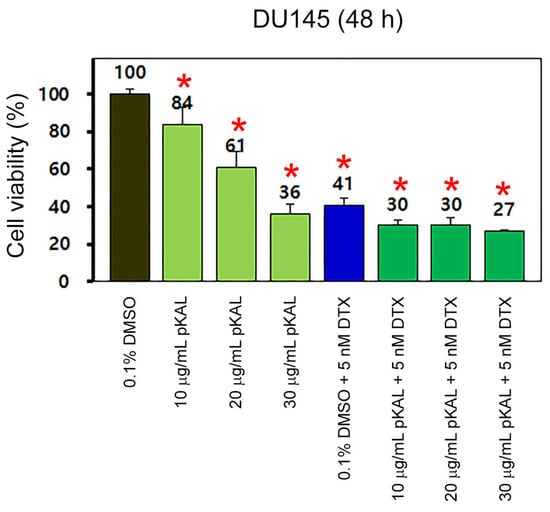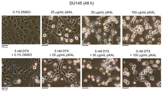 3.1. Anticancer Effect by Combined Treatment of DTX and pKAL in DU145 Prostate Cancer Cells