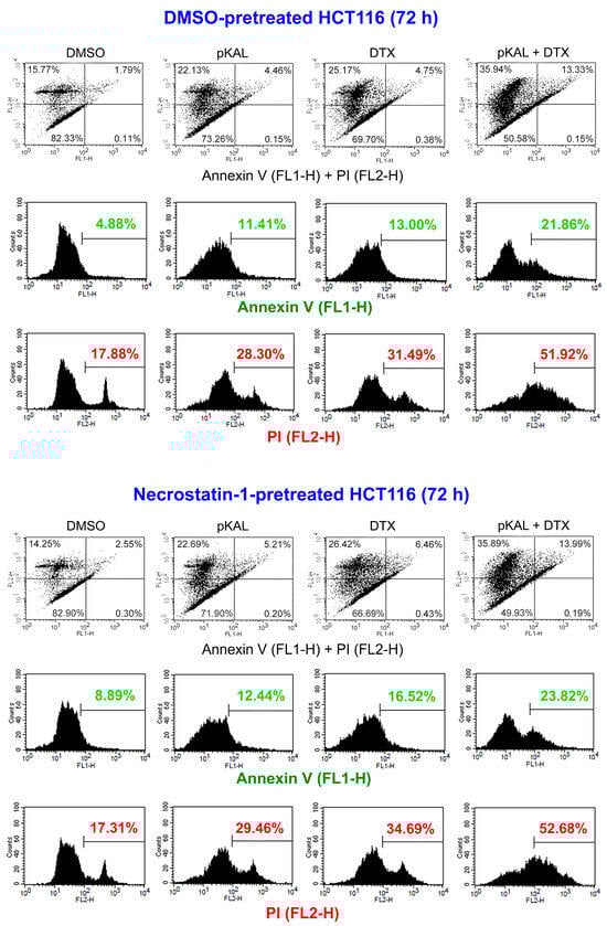 3.2. Anticancer Effect by Combined Treatment of DTX and pKAL in HCT116 Colorectal Cancer Cells
