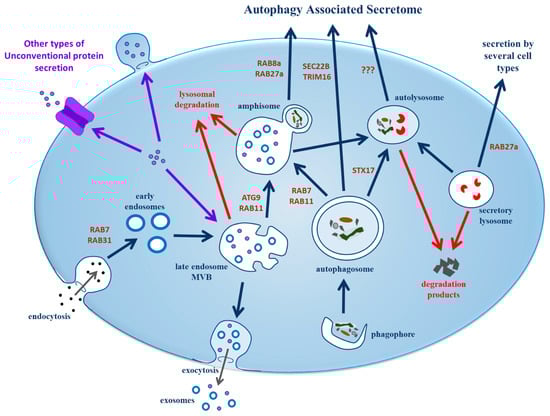 Of note, secretory autophagosomes are distinct both qualitatively and functionally from their degradative counterparts, being decorated with Rab8A or Rab8B proteins, respectively. However, both types are LC3 positive [19,20].