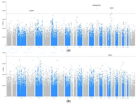 Our GWAS revealed an association between GD and three significant loci, LSAMP, NTN1, and HNRNPA3P5, which have not been related to AITD to date. The encoded preprotein of LSAMP is processed by proteolysis and forms a neuronal surface glycoprotein. This protein might play an important role in neuronal growth and axon guidance during the development of the limbic system. Moreover, the preprotein of LSAMP has been proposed to have tumour suppressor properties and a role in neuropsychiatric disorders [22]. In other studies, changes in LSAMP have been associated with Meniere’s disease and decreased bone mineral density [23,24].