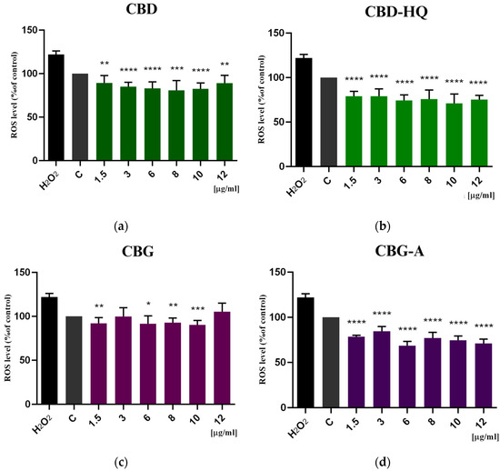 3.3. Study of the Antioxidative Effect of Cannabinoids