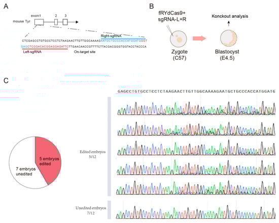 2.6. fRYdCas9 Could Be Used in Mouse Embryo Editing