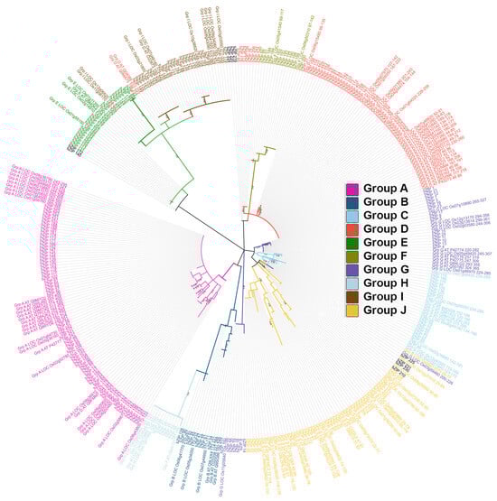 - Kumar, S.; Stecher, G.; Tamura, K. MEGA7: Molecular evolutionary genetics analysis version 7.0 for bigger datasets. Mol. Biol. Evol. 2016, 33, 1870–1874. [Google Scholar] [CrossRef]