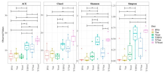 3.4. Taxonomic Composition in Relation to Rearing Diet