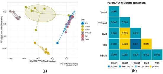- Chen, J.; Zhang, X.; Zhou, H. GUniFrac: Generalized UniFrac Istances, Distance-Based Multivariate Methods and Feature-Based Univariate Methods for Microbiome Data Analysis. 2023. Available online: https://CRAN.R-project.org/package=GUniFrac (accessed on 12 May 2024).