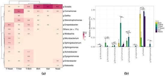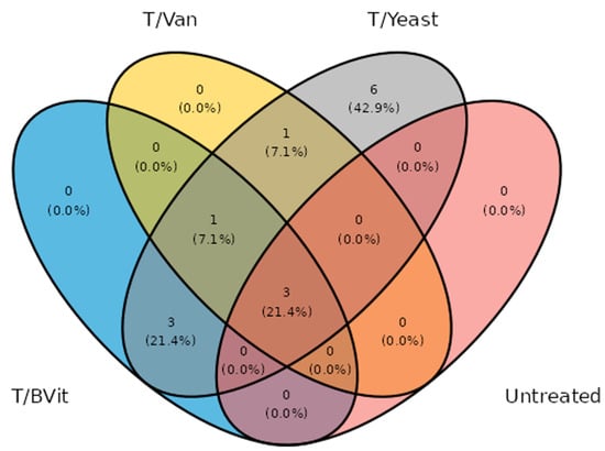 | OTUs | Phylum | Class | Genus | T/BVit | T/Van | T/Yeast | Untreated |