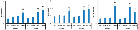A. fumigatus enhanced the expression of IL-1β, IL-8, and TNF-α mRNA and promoted the production of IL-1β and IL-8 proteins in maxillary sinus mucosa. Despite the increase in TNF-α mRNA, TNF-α protein production did not increase, suggesting that the administered fungi may not have sufficiently induced local inflammatory reactions. IL-1β is a proinflammatory cytokine that acts as a potent mediator of the inflammatory response through the stimulation and promotion of inflammatory cell migration. IL-8 also acts as a proinflammatory cytokine and chemokine, which contributes to the initiation and amplification of inflammatory responses and migration of neutrophils. ZO has been known as an indispensable component for fungal growth and activation for fungal metabolism [