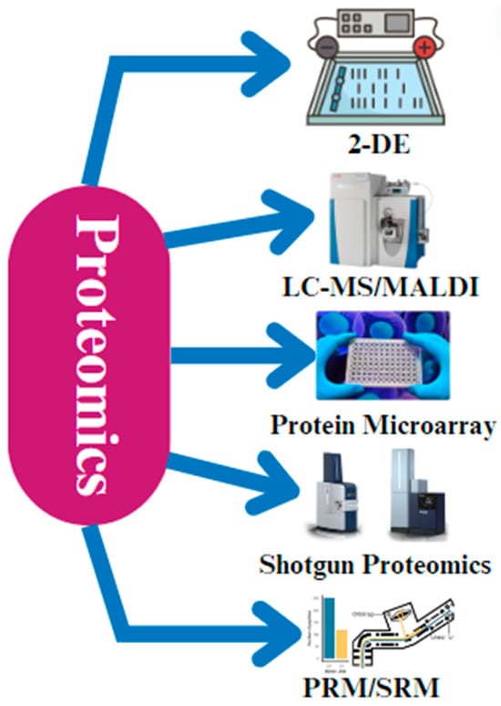 Matrix-assisted laser desorption/ionization (MALDI) is a mass spectrometry technique that is often used for protein profiling and identification. It has a fast analysis speed and high sensitivity, but it may not be as effective as LC-MS in terms of data quality and proteome coverage. MALDI makes it possible to identify and measure proteins in complicated biological samples [55]. Liquid chromatography–mass spectrometry (LC-MS) and matrix-assisted laser desorption/ionization (MALDI) are two popular forms of mass spectrometry (MS) [56]. Because of the excellent sensitivity and specificity of these methods, we can even identify proteins with low abundances and post-translational modifications [57].