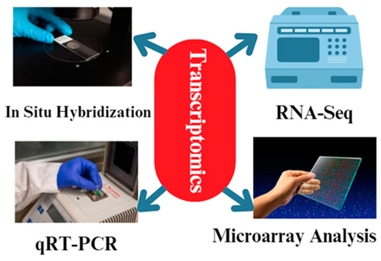 The different methodologies used during transcriptomics analysis. The most common techniques are qRT-PCR and RNA-Seq. In addition, microarray analysis and in situ hybridization techniques are used for transcriptomics analysis.