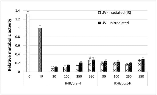 - Ghasemi, M.; Turnbull, T.; Sebastian, S.; Kempson, I. The MTT Assay: Utility, Limitations, Pitfalls, and Interpretation in Bulk and Single-Cell Analysis. Int. J. Mol. Sci. 2021, 22, 12827. [Google Scholar] [CrossRef]