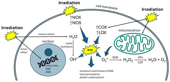 - Azzam, E.I.; Jay-Gerin, J.-P.; Pain, D. Ionizing Radiation-Induced Metabolic Oxidative Stress and Prolonged Cell Injury. Cancer Lett. 2012, 327, 48–60. [Google Scholar] [CrossRef] [PubMed]