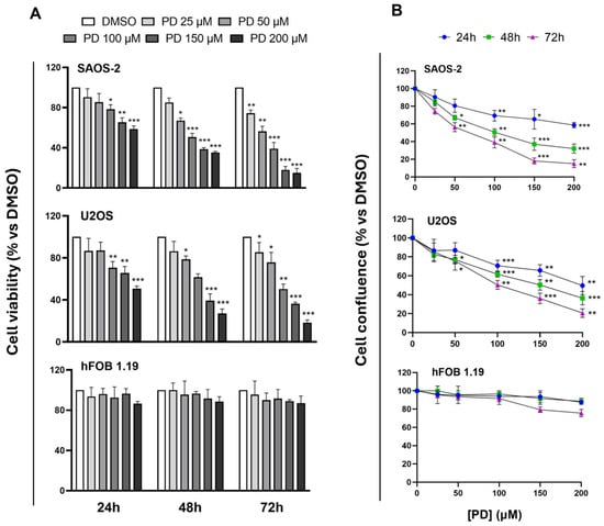 3.1. Cytotoxic Effects of PD on Human OS Cells