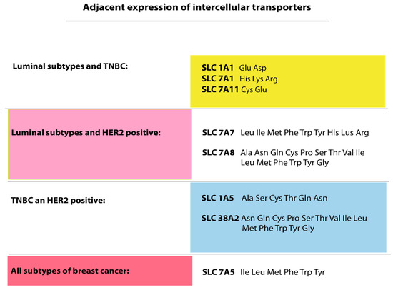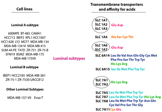 The main amino acid transporters in luminal subtypes of breast cancer are shown in Figure 2.
