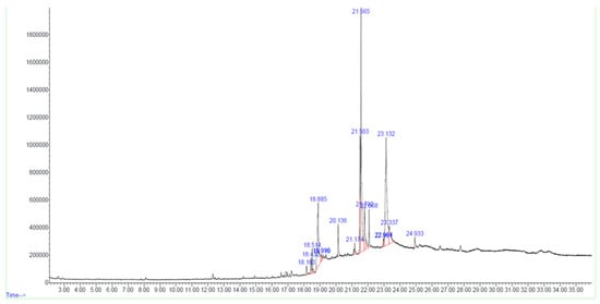 GC-MS chromatogram of bioactive HPLC fraction of Tribulus terrestris fruit methanolic extract.