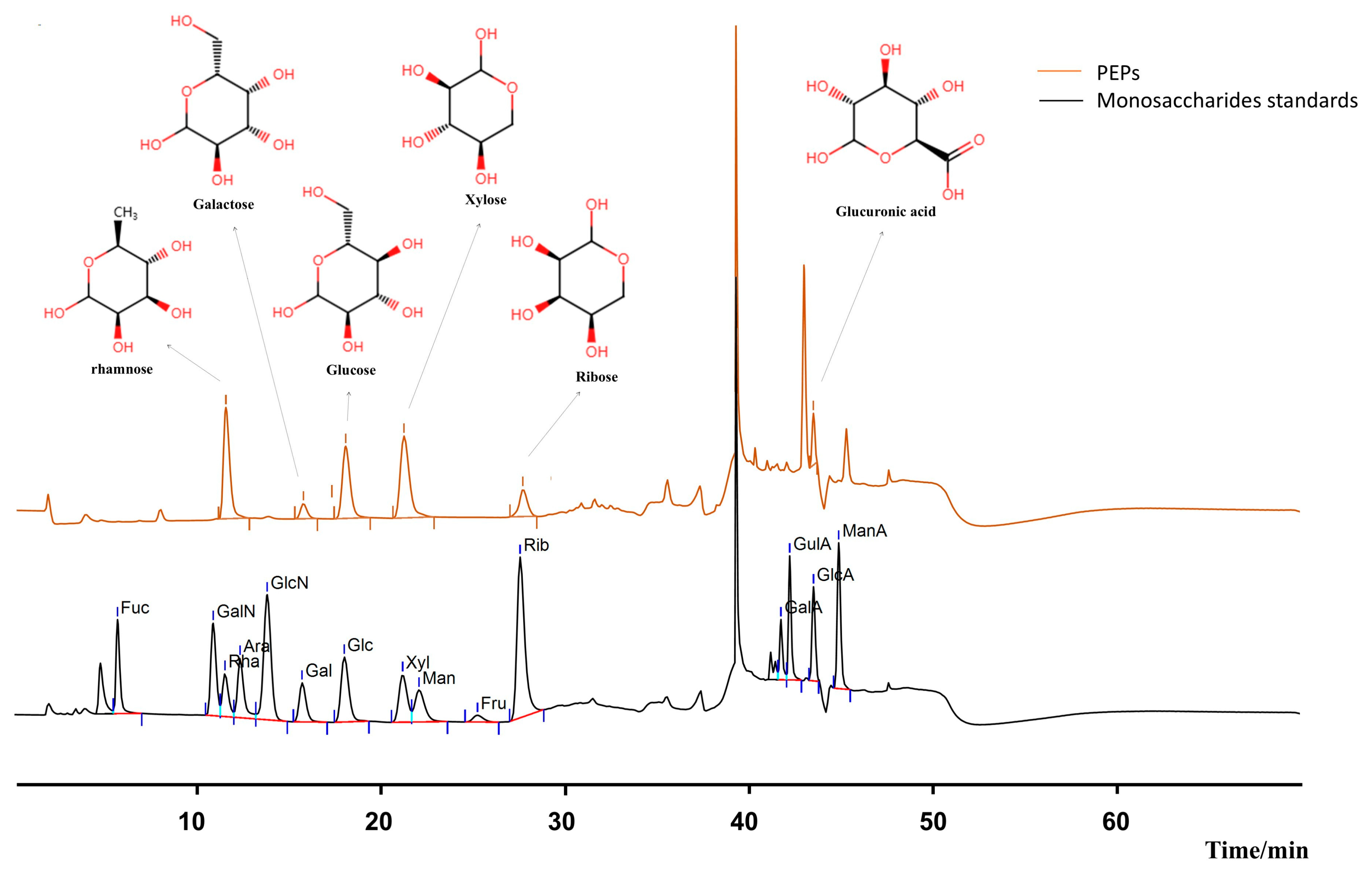 2.2. Analysis of the Monosaccharide Structure of PEPs
