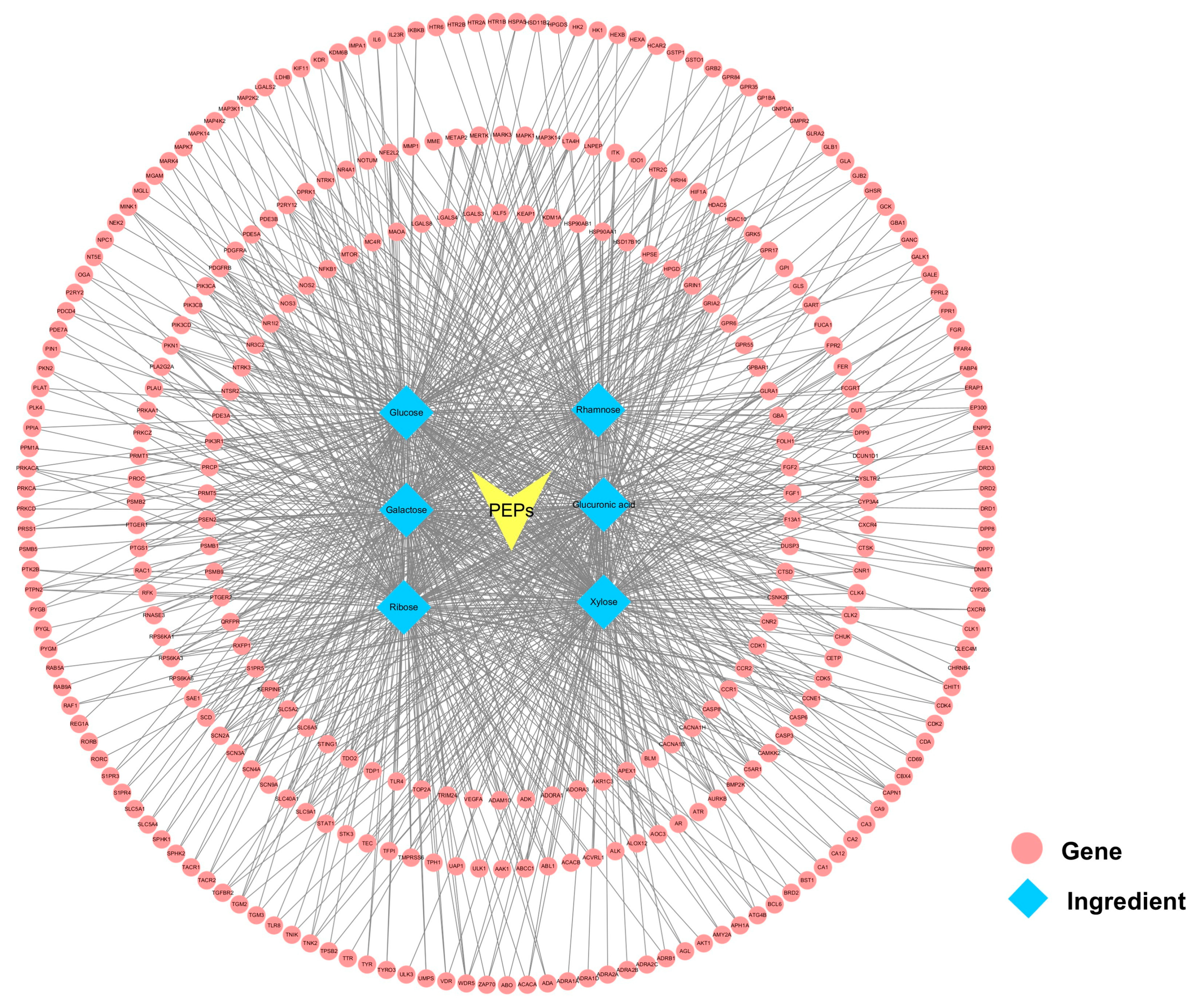 - Fan, X.; Gao, J.; Liu, S.; Hua, J.; Shao, D.; Jia, L.; Shen, Y.; Wang, Z.; Jin, Z.; Wang, J. Integration of network pharmacology and transcriptomics to reveal the mechanism of Paeoniae Radix Alba Polysaccharide in alleviating hepatic fibrosis. J. Ethnopharmacol. 2025, 353, 120357. [Google Scholar] [CrossRef]