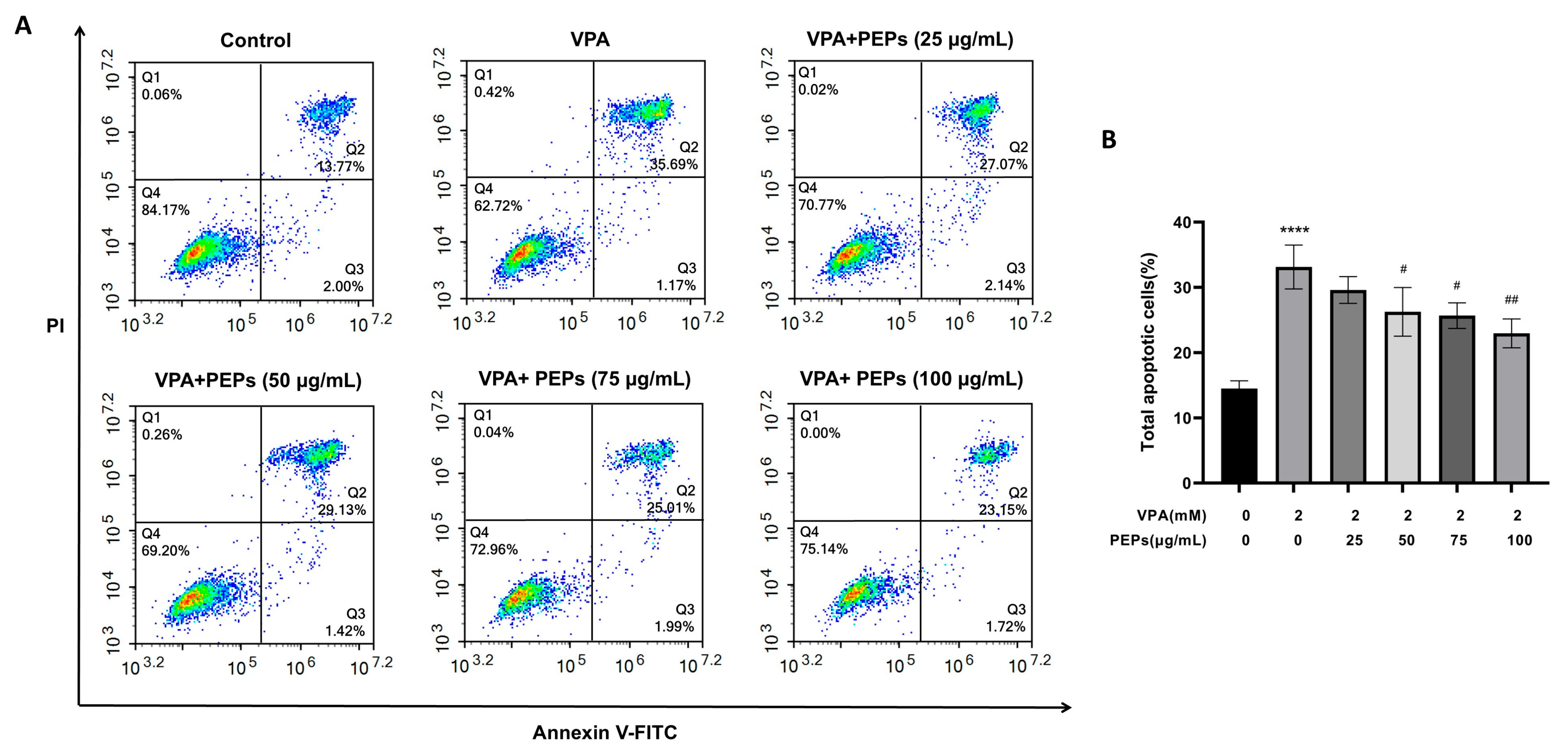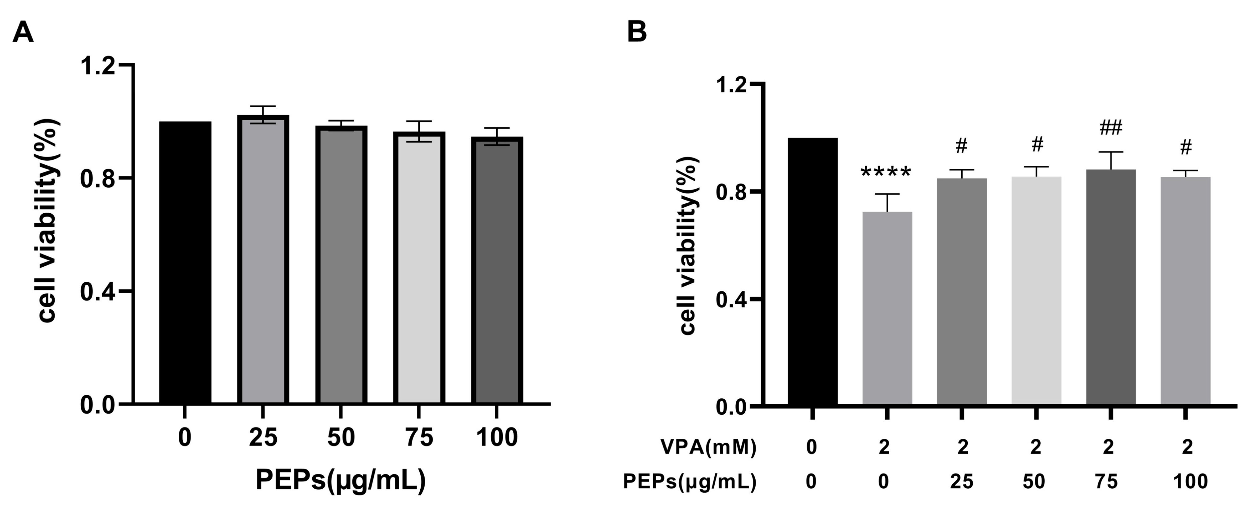 3.8. PEPs Suppresses VPA-Induced Cytotoxicity in HT22 Cells