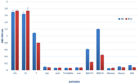 - Loureiro, L.; Carrascal, M.; Barbas, A.; Ramalho, J.; Novo, C.; Delannoy, P.; Videira, P. Challenges in Antibody Development against Tn and Sialyl-Tn Antigens. Biomolecules 2015, 5, 1783–1809. [Google Scholar] [CrossRef] [PubMed]