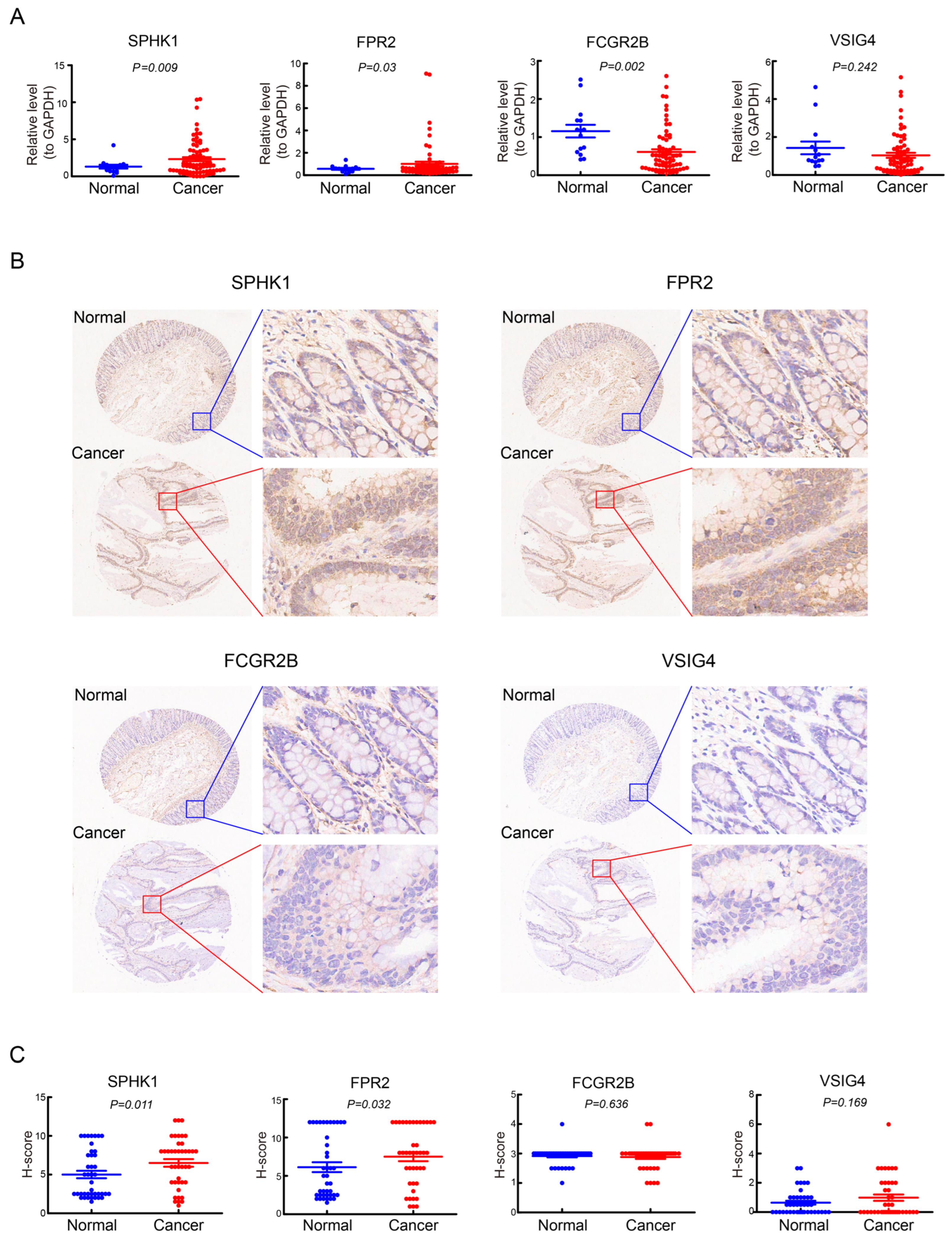 3.9. Validation of the Expression of the Four Prognostic Genes in CRC
