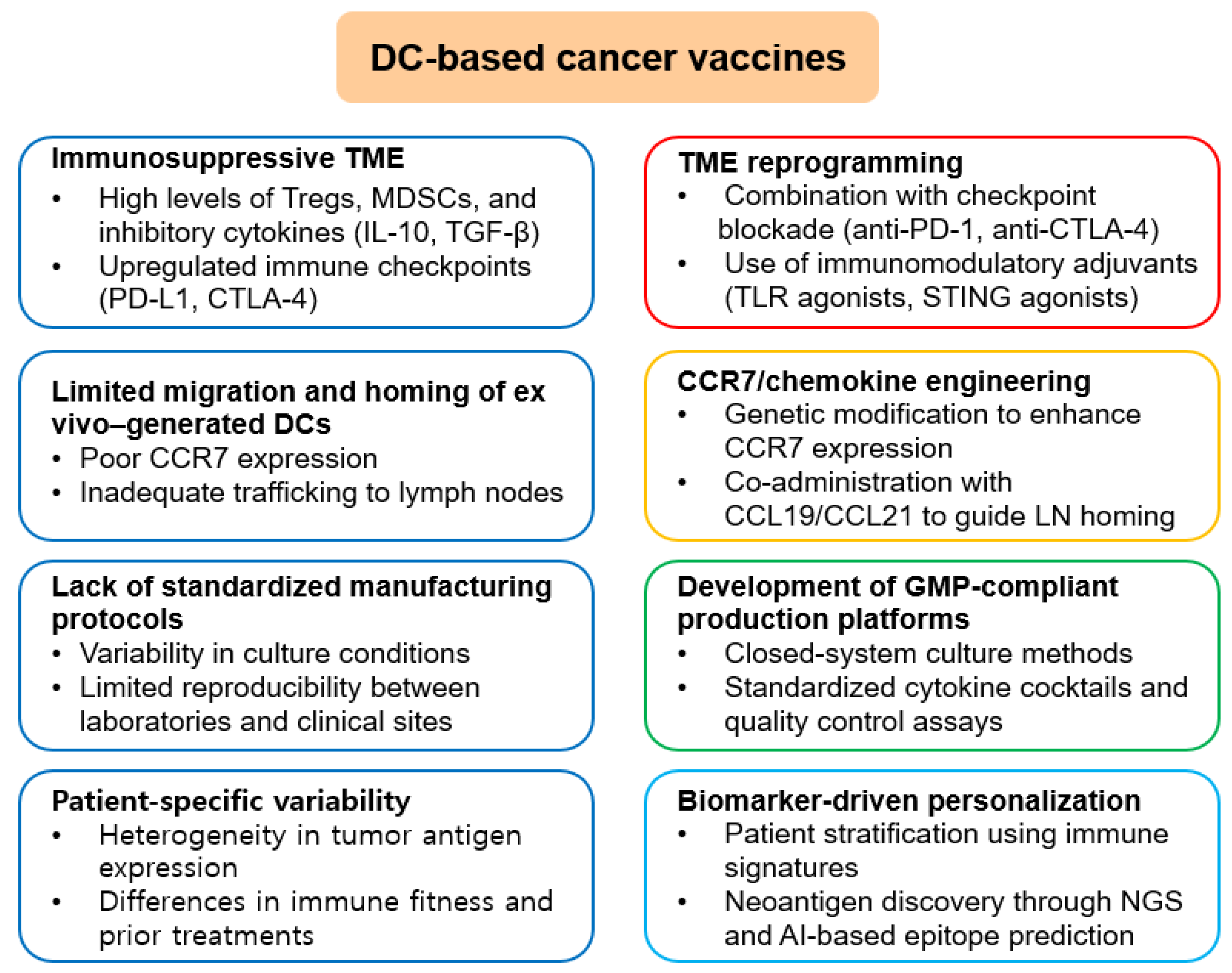 - Mastelic-Gavillet, B.; Balint, K.; Boudousquie, C.; Gannon, P.O.; Kandalaft, L.E. Personalized Dendritic Cell Vaccines-Recent Breakthroughs and Encouraging Clinical Results. Front. Immunol. 2019, 10, 766. [Google Scholar] [CrossRef]